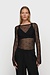 De transparante mesh look met raw edge details en duimsgaten in de mouwen.