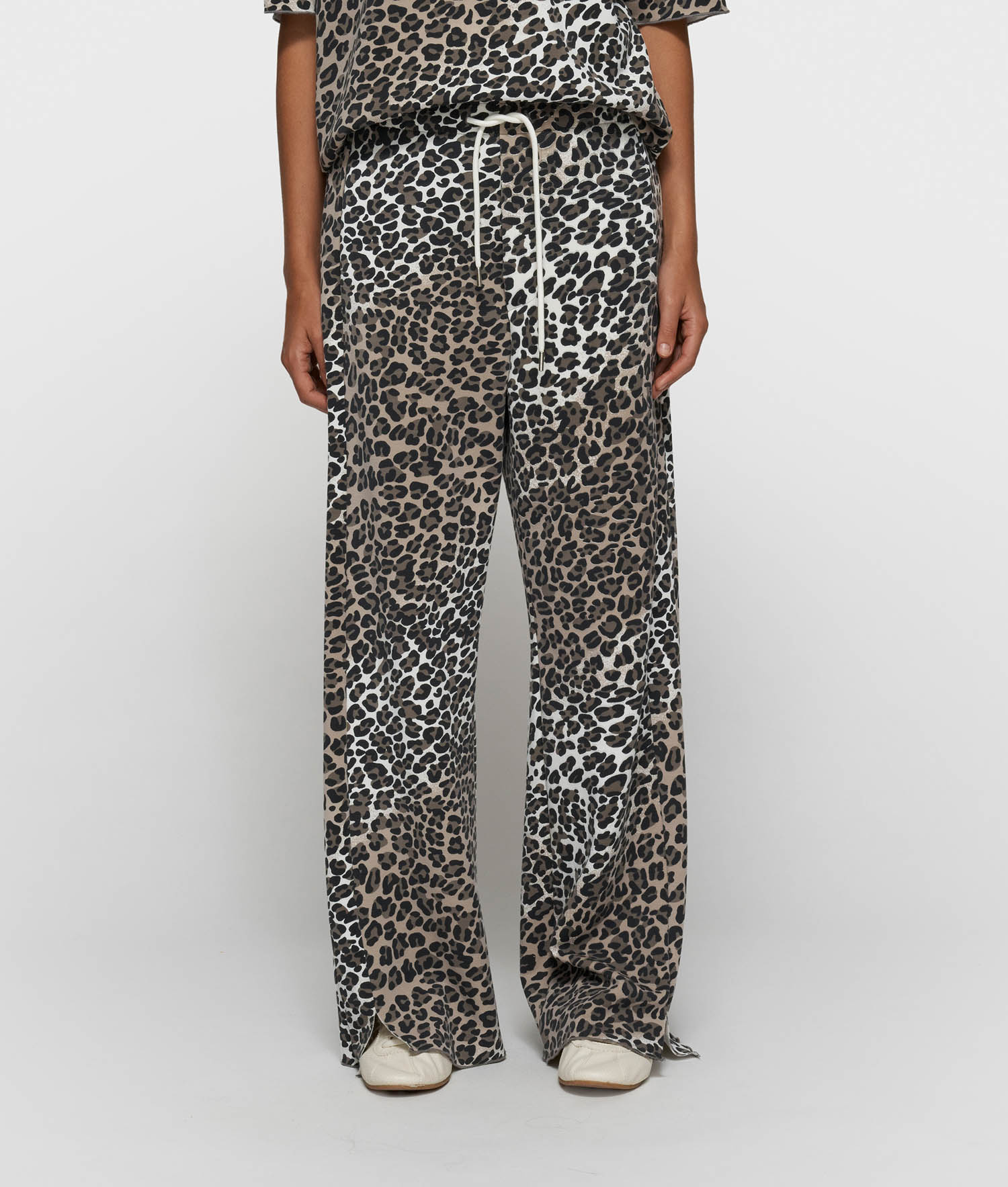 Ecru soft scuba pants leopard