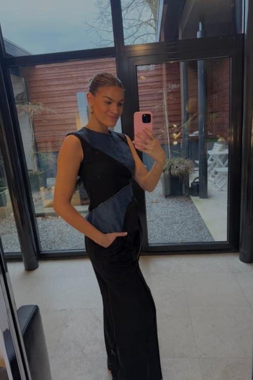 1/OFF Donkerblauwe Top Suiting Patchwork