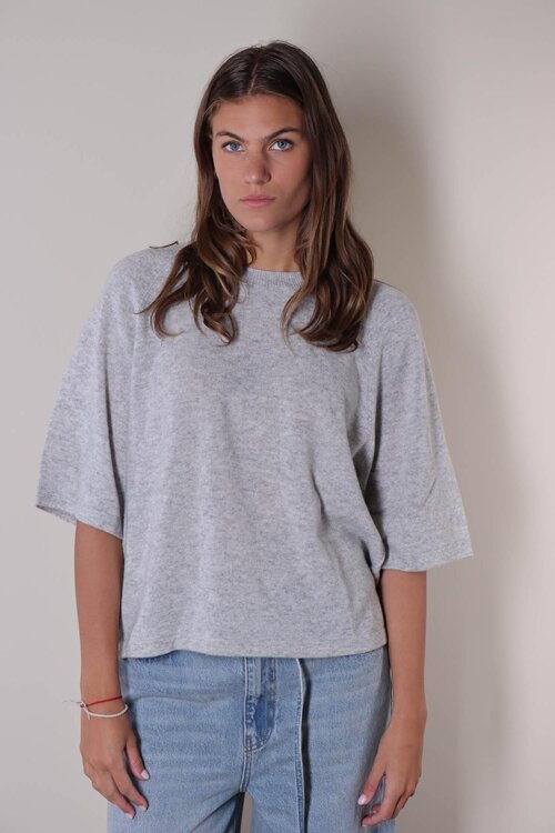 Absolut Cashmere Leana cashmere trui light heather grey met ronde hals