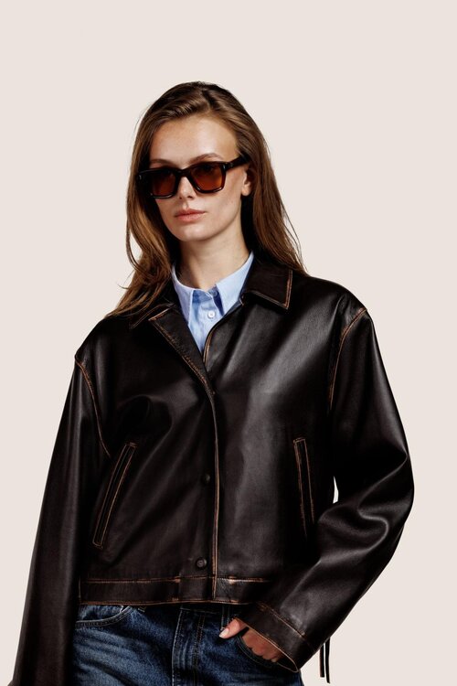De Alter Ego Fallon Leather Jacket in Vintage Brown is een statement leren jas met een rijk, doorleefd karakter. Gemaakt van zacht premium vintage schapenleer en ontworpen met een modern silhouet — een tijdloos leren jack dat elke outfit direct kracht geeft.