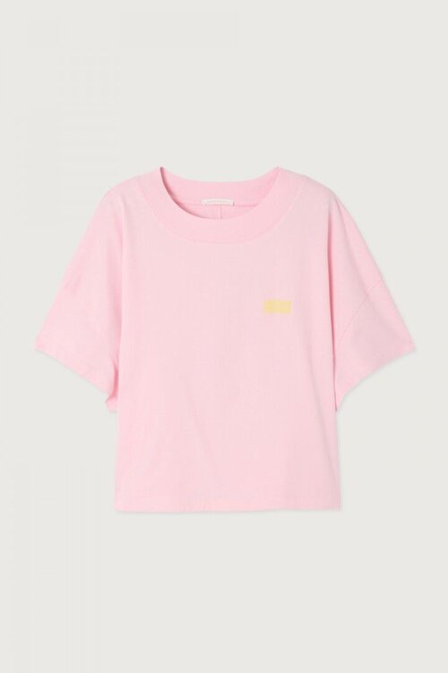 Het American Vintage Gixy T-shirt in barbe a papa is een modern dames T-shirt met een oversized pasvorm en een sportieve uitstraling. Het gladde, dikke katoen is subtiel geschuurd voor een ultrazacht gevoel, terwijl de boothals, lage armsgaten en korte lengte zorgen voor een eigentijdse look.