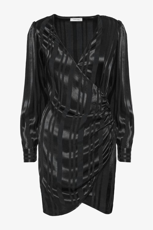 Little black dress van Anine Bing! In overslag model met gestreepte stof en v-hals. Met ritssluiting in de zijnaad.