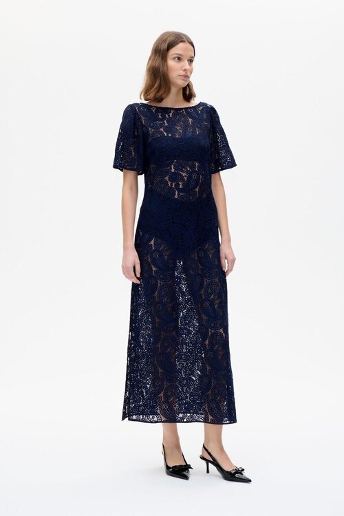De lange navy jurk van Baum und Pferdgarten is een elegant en tijdloos stuk dat moeiteloos klasse uitstraalt. Het vloeiende silhouet, de diepe kleur en verfijnde details maken deze jurk perfect voor zowel formele gelegenheden als stijlvolle dagelijkse looks.