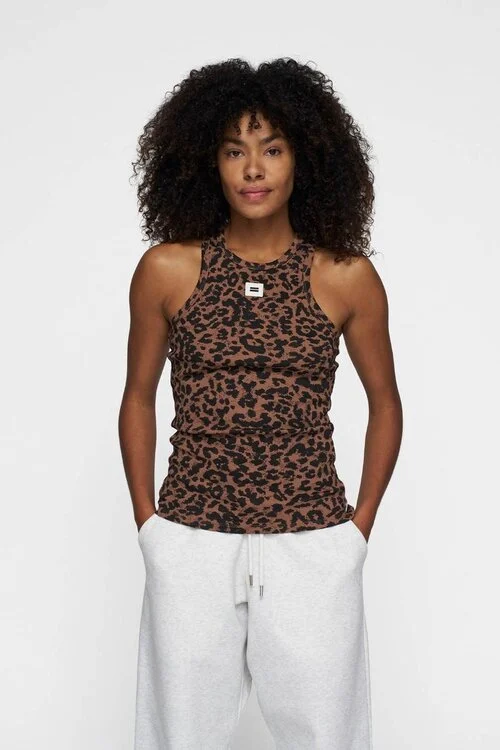 De tank top komt ook steeds weer terug nu met een leuke leopard print erop. Leuk om je casual outfits iets meer te geven. Het is gemaakt van een comfortabele ribstof die perfect aansluit op het lichaam, terwijl het iconische leopard patroon zorgt voor een statement look.