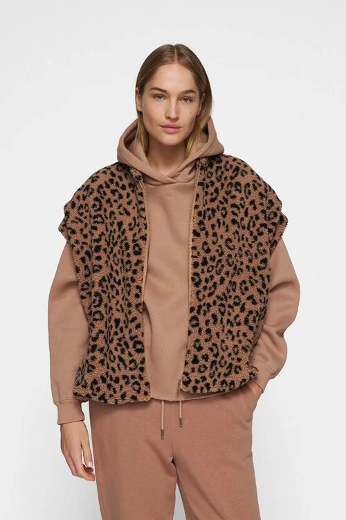 We hebben nu ook nieuw in de drop deze mooie teddy gilet gemaakt van een zachte, teddy-achtige stof en voorzien van een gedurfd leopardpatroon, biedt dit gilet een warme en modieuze aanvulling op je herfst- en wintergarderobe. Het ontwerp is casual, maar toch verfijnd.