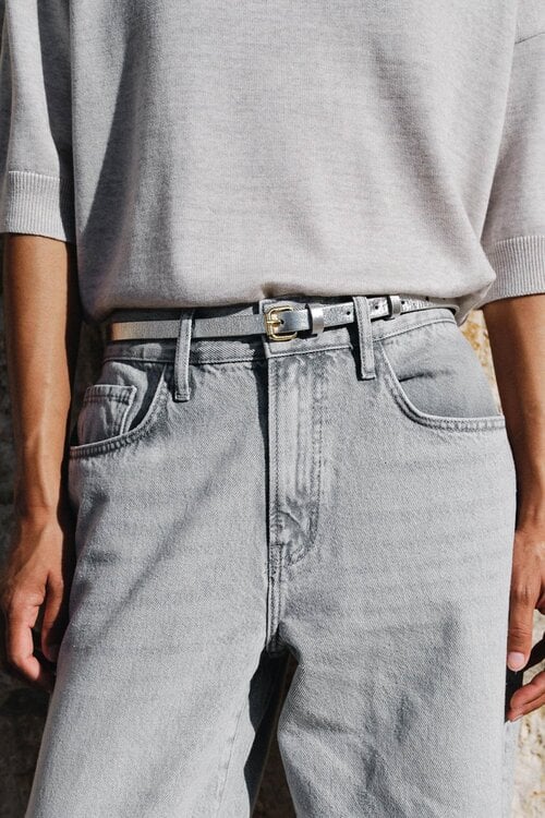Deze riem is perfect om te dragen met zowel casual als geklede outfits en geeft elke look een moderne touch.