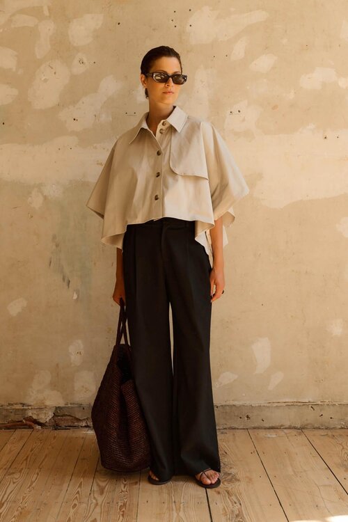 - Combineer met een pantalon (zwart of ecru) voor een clean city-outfit