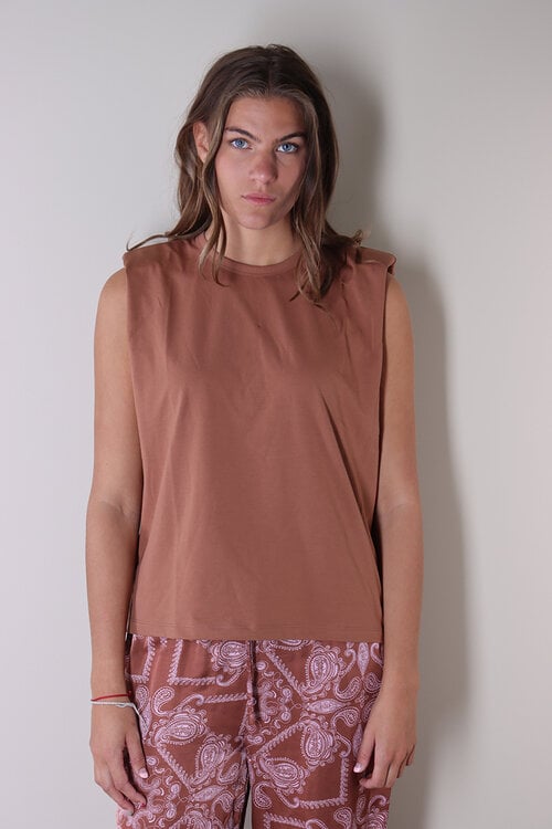 De Co’Couture Eddie Shirt in oranje is een krachtig basic item met een moderne, vrouwelijke uitstraling. Dankzij de losse pasvorm, het mouwloze design en de zachte katoenmix is dit T-shirt perfect voor een comfortabele en stijlvolle alledaagse look.