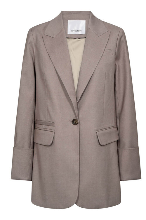 Deze beige dames blazer van Co'Couture combineert een tijdloze uitstraling met een moderne pasvorm. Een veelzijdig item dat zowel zakelijk als casual moeiteloos inzetbaar is.