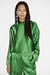 De Lorelle blouse van Dante6 in Ultra Green is een satijnen essential met een moderne twist: een hoge hals, brede manchetten en een boxy cropped fit voor een krachtige, elegante look.