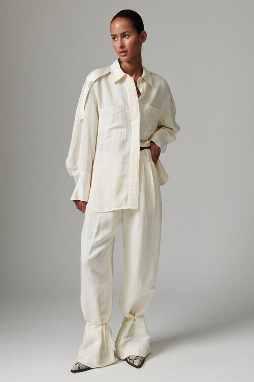 Deze DAY by Birger et Nikkelsen blouse is met zorg geselecteerd door Van Dort Mode voor wie een statement blouse zoekt met textuur, detail en een luxe uitstraling.
