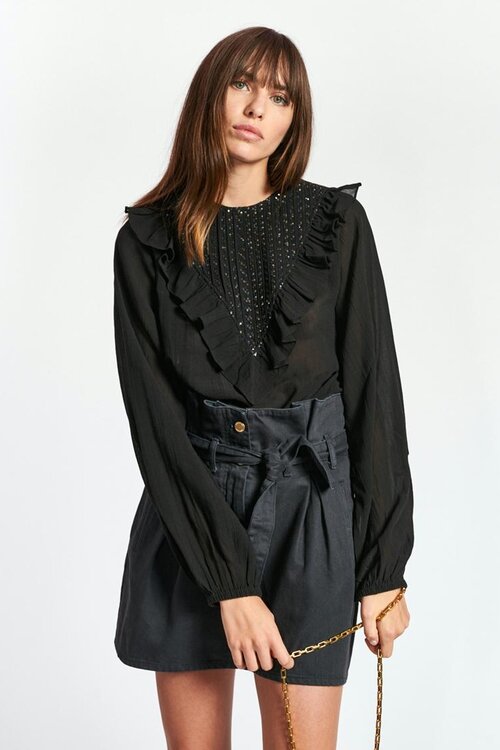 Romantische Essentiel Antwerp blouse met ruches en pailletten