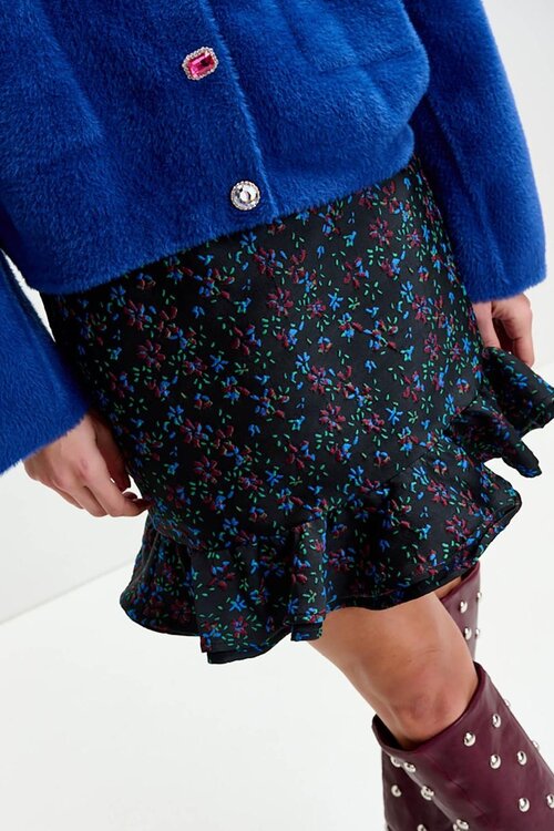 De Imaginary Skirt van Essentiel Antwerp is een vrouwelijke en speelse rok die je outfit direct een stijlvolle twist geeft. De subtiele bloemenprint in frisse kleuren komt prachtig tot leven op de donkere ondergrond, terwijl de zwierige volant langs de zoom zorgt voor een sierlijk en elegant effect.