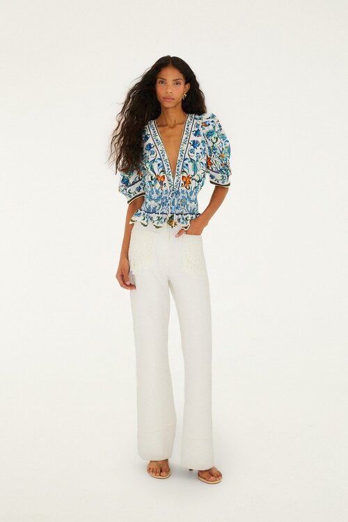 Farm Rio Flora Tile blouse off-white
