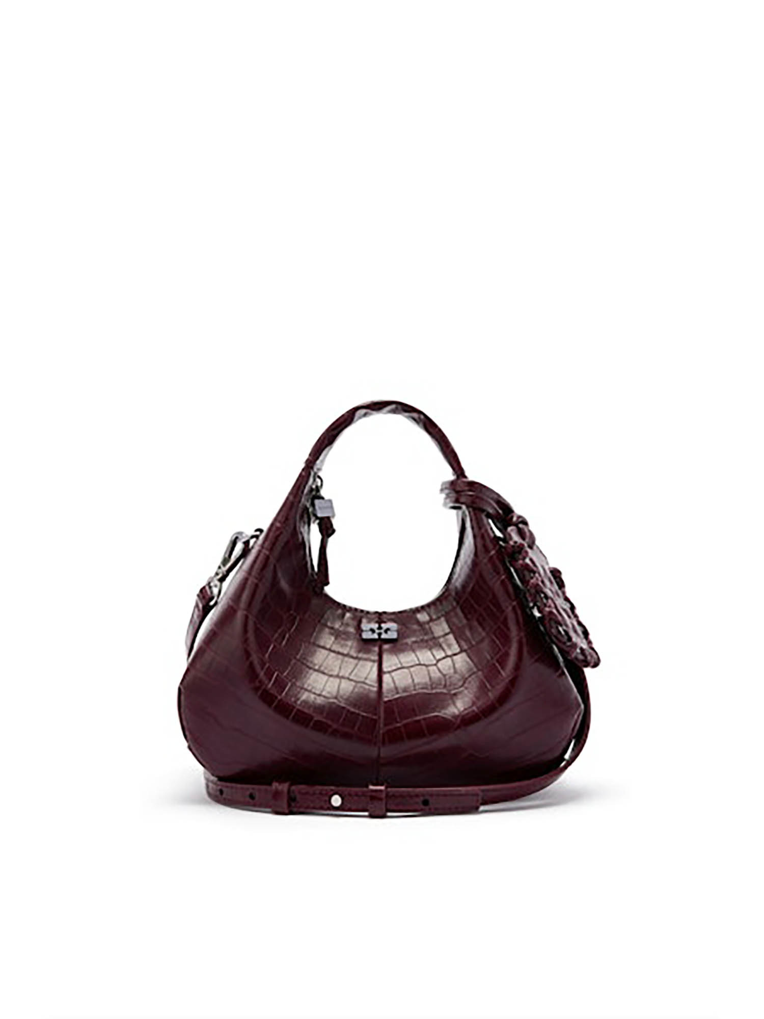 Deze mini hobo bag in Burgundy (436) heeft een luxe croco-structuur en een compacte, stijlvolle vorm. Perfect om je essentials chic mee te nemen, van day-to-dinner.