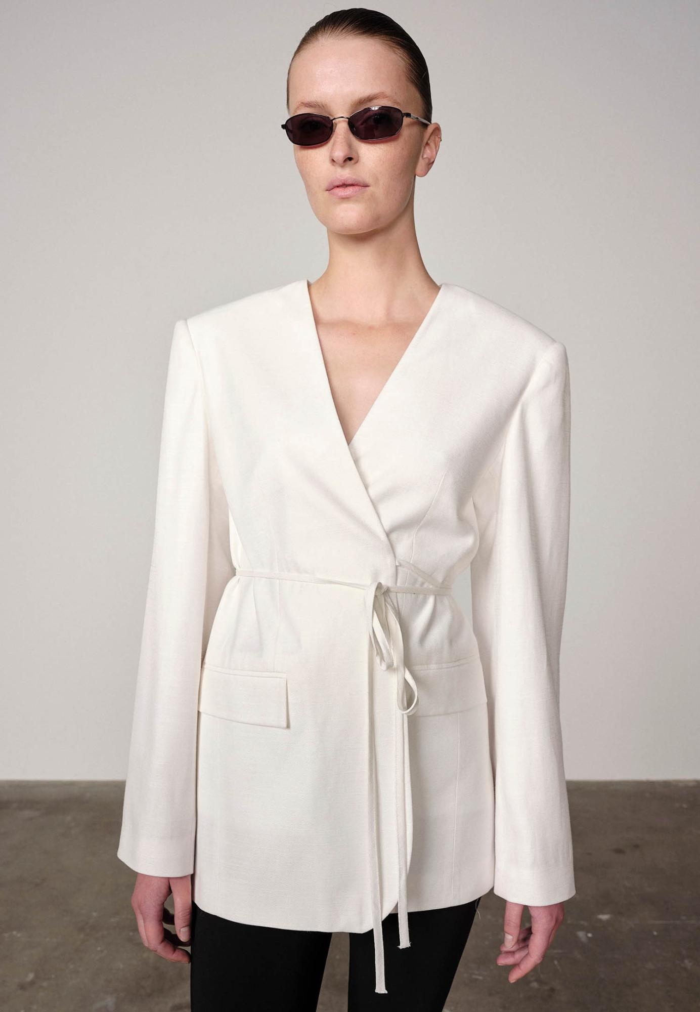 • Wrap-geïnspireerd voorpand met clean knoopdetail