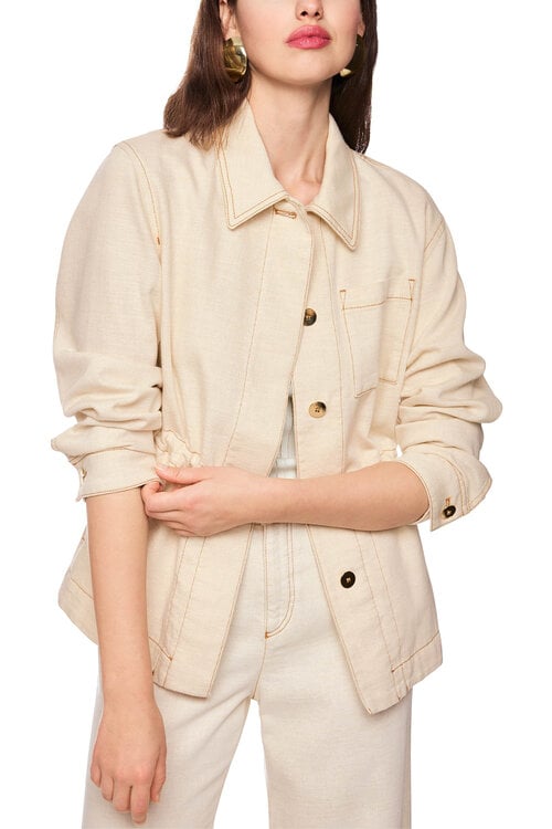 Het jasje heeft een getailleerde pasvorm en kan dankzij de trekkoorden naar wens worden aangepast.