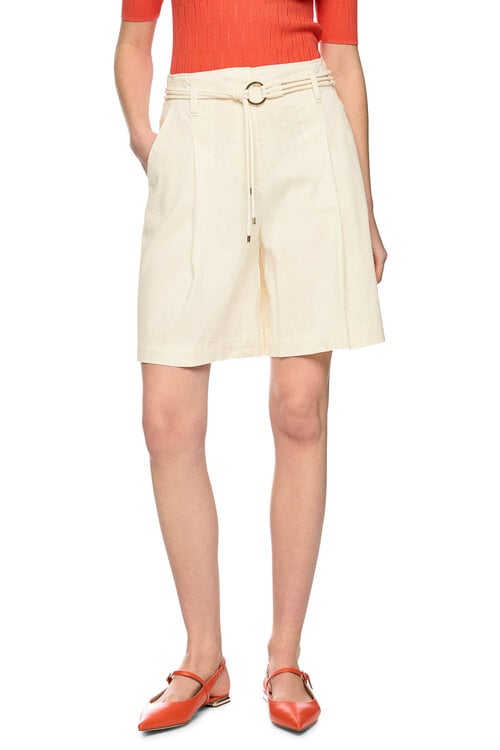 Marc Cain WARANGAL short in bright ecru van linnenmix met riem