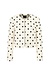 Jasje met polkadots in couturestij. Het korte jasje heeft een boxy snit en is voorzien van een opvallend stippendessin. Een gouden lurexdraad zorgt voor een subtiel glinsterend effect. Het jasje kan worden vastgemaakt met drie goudkleurige sluitingen die kunnen worden vastgehaakt. Met een gevoerde binnenkant en gewatteerde schouders.