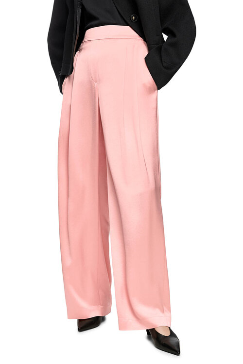 Deze peach beige Neutral Affinity pantalon van Marccain is een elegante instapbroek in soepel vallend satijn, met wijde pijpen en bandplooien voor een lange, vrouwelijke lijn.