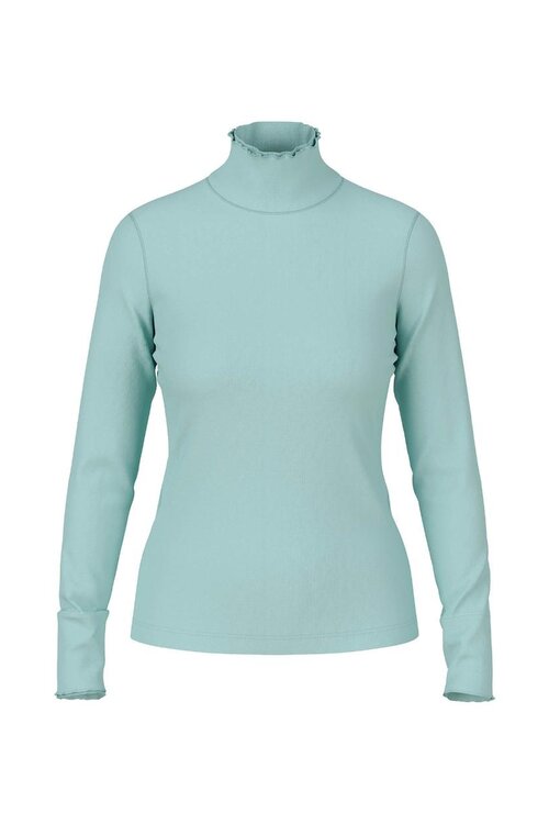 Effen colshirt in soft teal met fijne rib en rolzoompjes. Stretchy katoenmix, getailleerde fit. Lees meer.