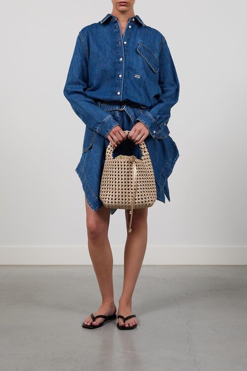 De Marrea Basket Open Weave in Champagne Satin Gold is een luchtige, handgeweven tas met zomerse uitstraling. Dit open-weave ontwerp combineert vintage coastal chic met het comfortabele en flexibele karakter van neopreen.