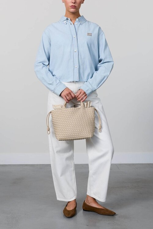 De Marrea Midi is vervaardigd van handgeweven neopreen — een lichtgewicht, duurzaam en onderhoudsvriendelijk materiaal dat zacht aanvoelt maar zijn structuur behoudt. De zachte textuur en hoogwaardige afwerking zorgen voor een premium look en feel, die je outfit direct een upgrade geeft.
