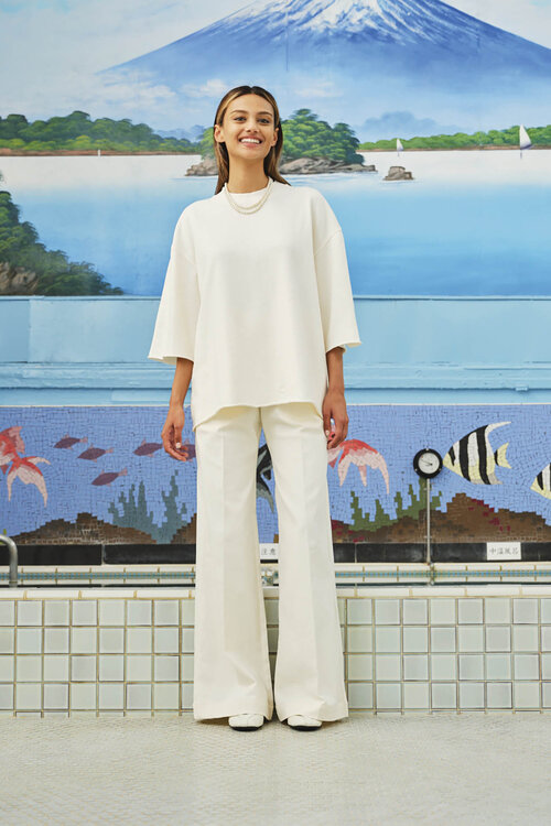 • Draag op een wide-leg broek voor modern minimal