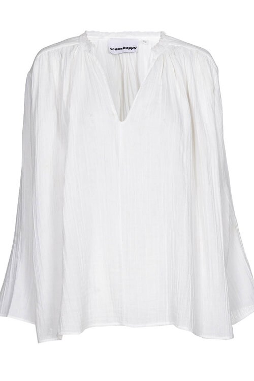 De Sencha Blouse Wrinkled Cotton van Sea Me Happy in White is een one size blouse van 100% katoen. De wrinkled structuur geeft een nonchalante, stijlvolle look.