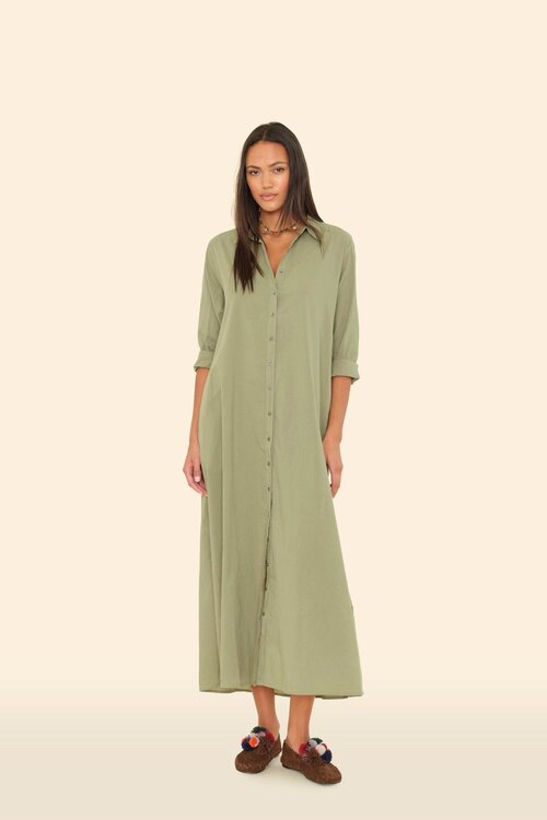 De Xirena Dark Seagrass Boden Dress is een tijdloze shirtdress van lichtgewicht katoen, ontworpen met een verfijnde pasvorm en een moeiteloos draagcomfort.