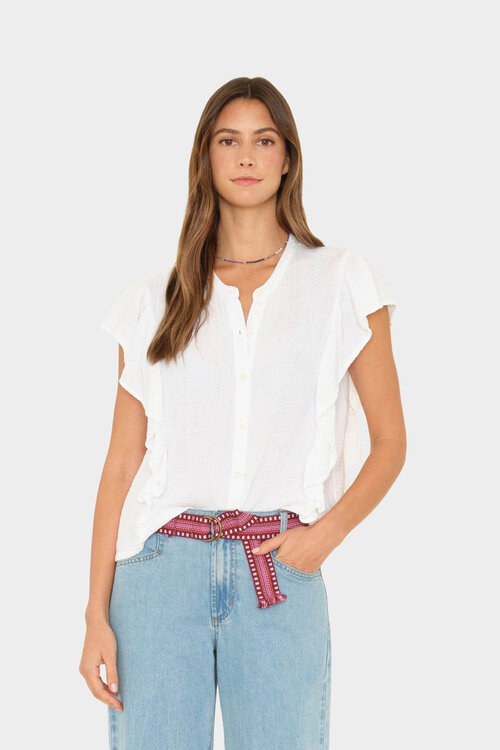 De Xirena Ashlyn Top in White is een verfijnde, luchtige katoenen blouse met een vrouwelijke uitstraling. De frisse witte kleur en subtiele details maken dit een veelzijdige essential voor een moderne voorjaars- en zomergarderobe.